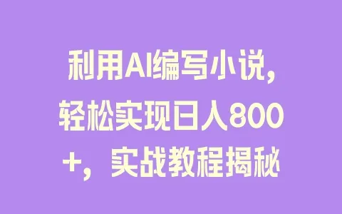 利用AI编写小说,轻松实现日入800+,实战教程揭秘