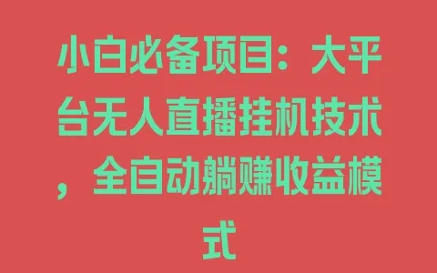 在2024年,一个新兴的风口项目正在抖音上悄然兴起,那就是无人主播撸音浪+卖课程的玩法。这种模式的核心是通过抖音无人直播的方式,播放美女素材,吸引色粉刷音浪以及购买课程。 我们需要明确的...