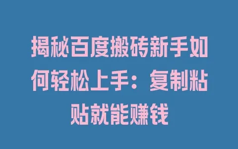 揭秘百度搬砖新手如何轻松上手:复制粘贴就能赚钱