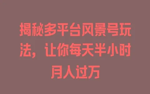 揭秘多平台风景号玩法,让你每天半小时月入过万